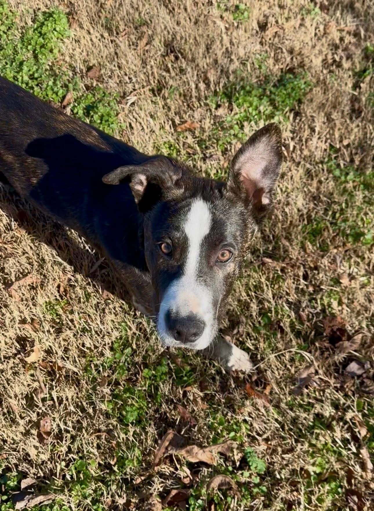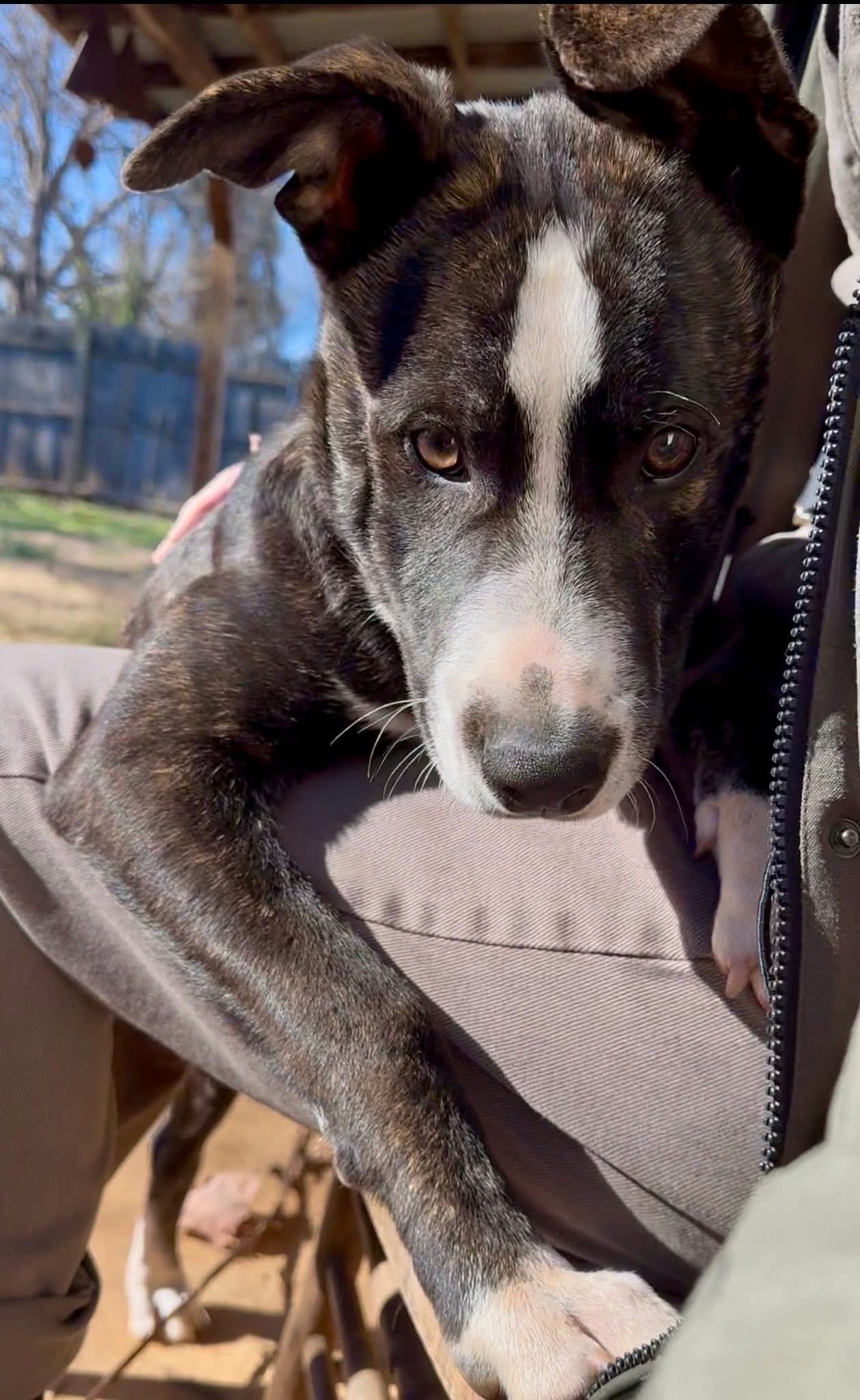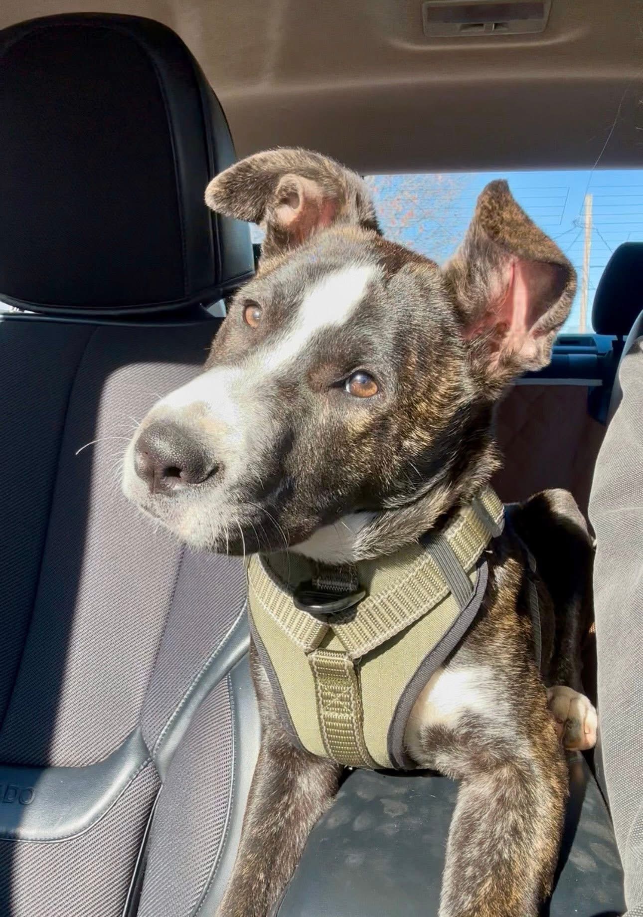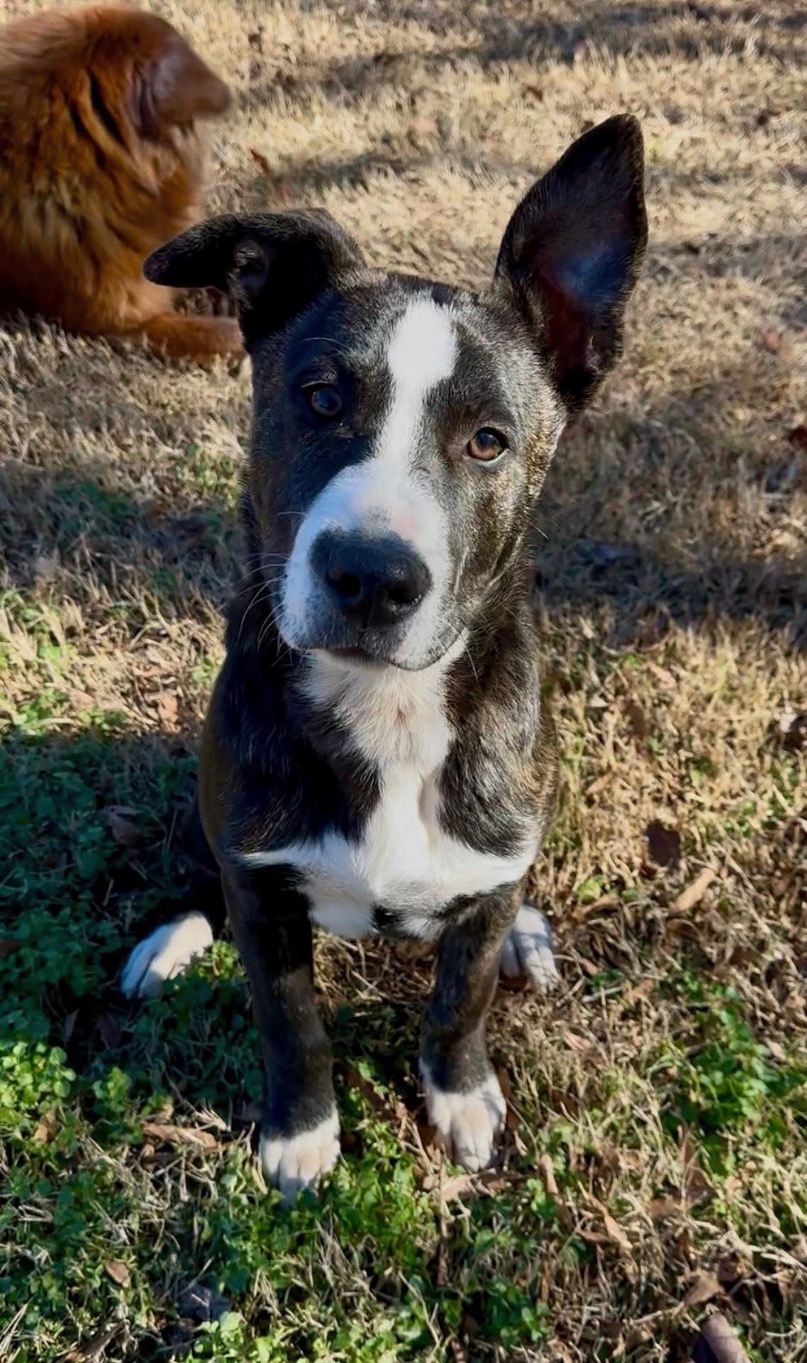 Draco is a 7-month-old brindle Pitbull-Boxer mix with a personality as charming as his adorable, “can’t-make-up-their-mind” ears. One moment they’re floppy, the next they’re standing tall- and the whole time, he’s giving you a look that will absolutely make you laugh.